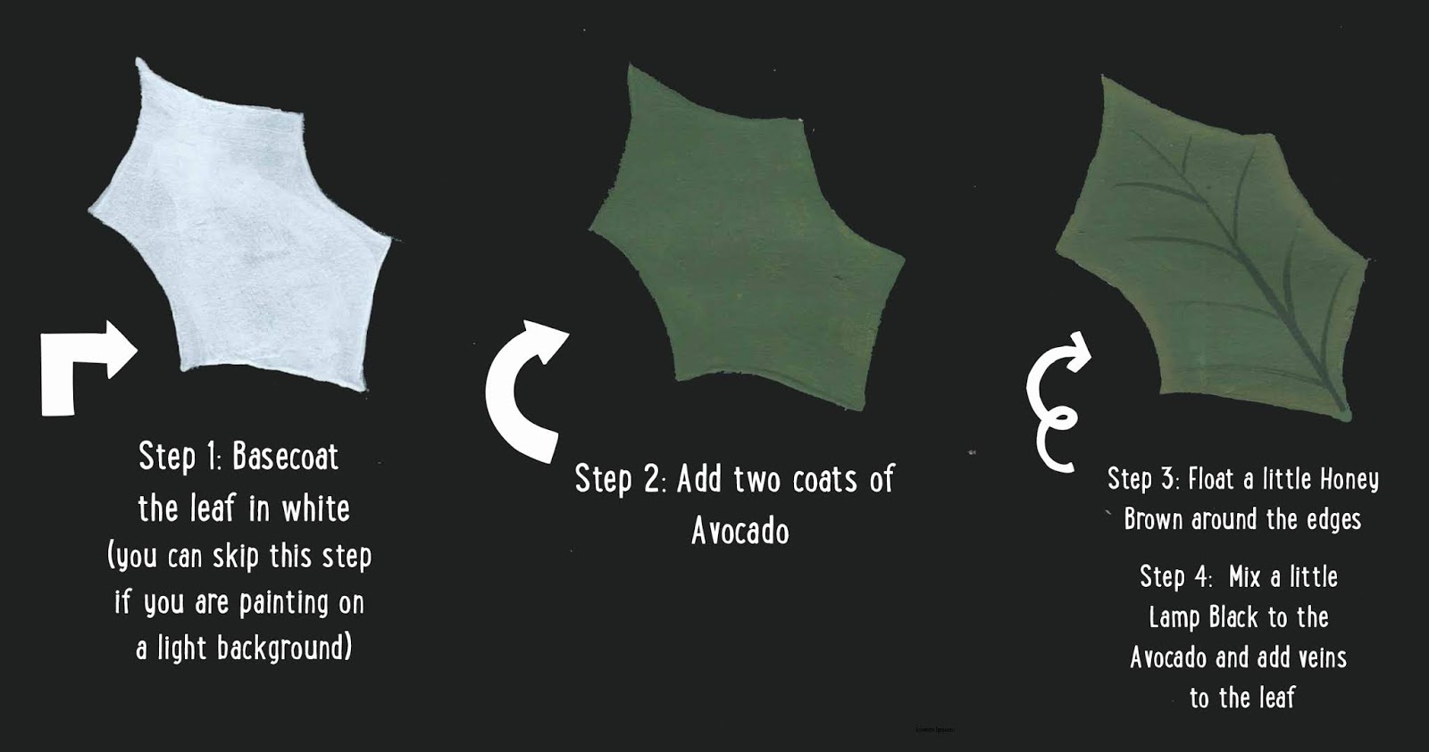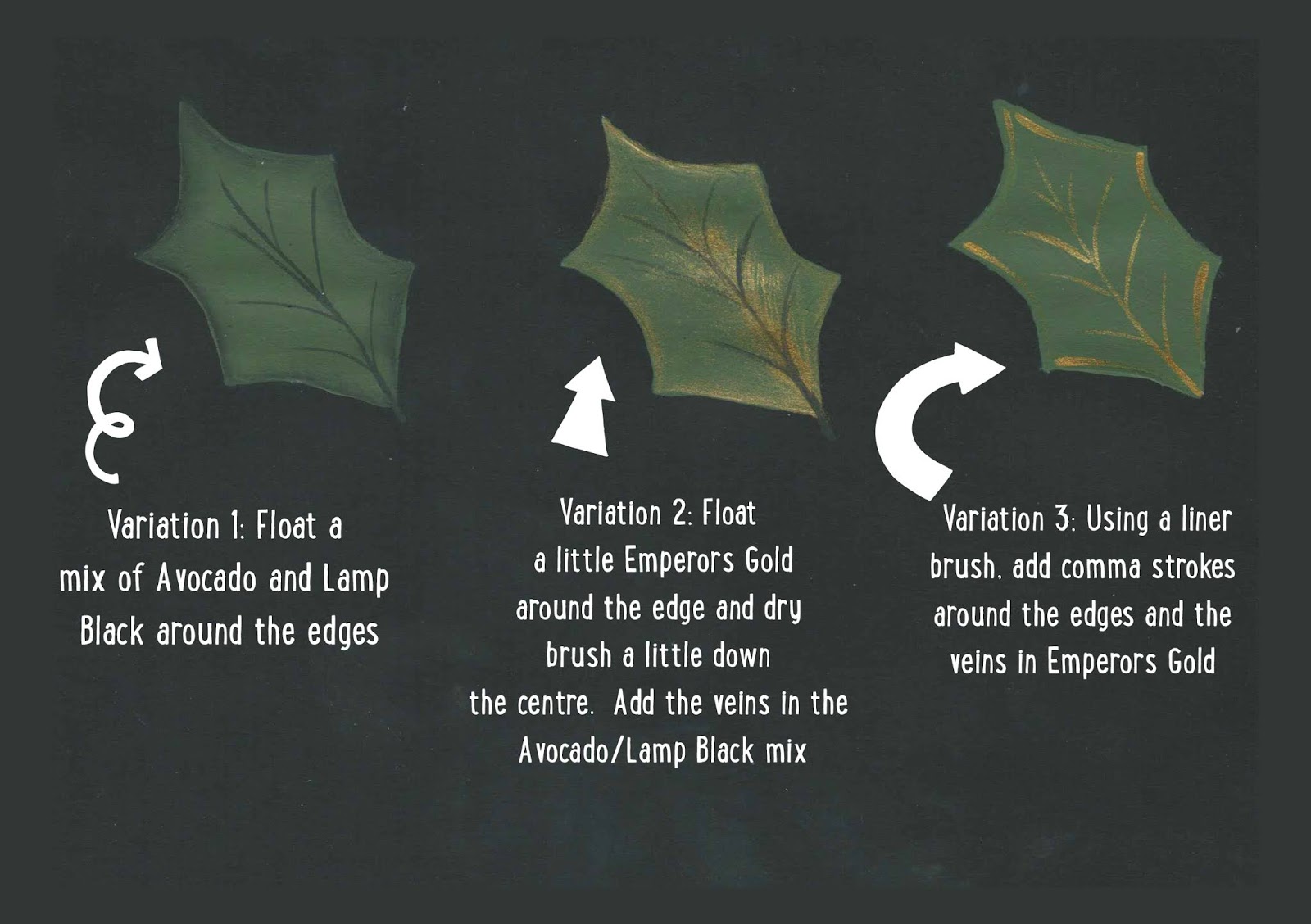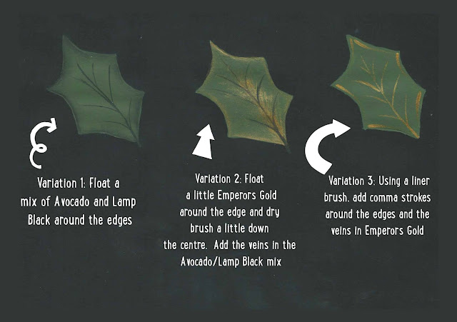 If you have joined us after we launched our Folk Art Masterclass for Beginner painters, you may not have discovered the floating technique (Carol teaches this skill in the Intermediate course due to be released in the very near future). If you don't know how to float, or are not confident enough to use this technique, add comma strokes around the leaf as we did for Variation 3 above.