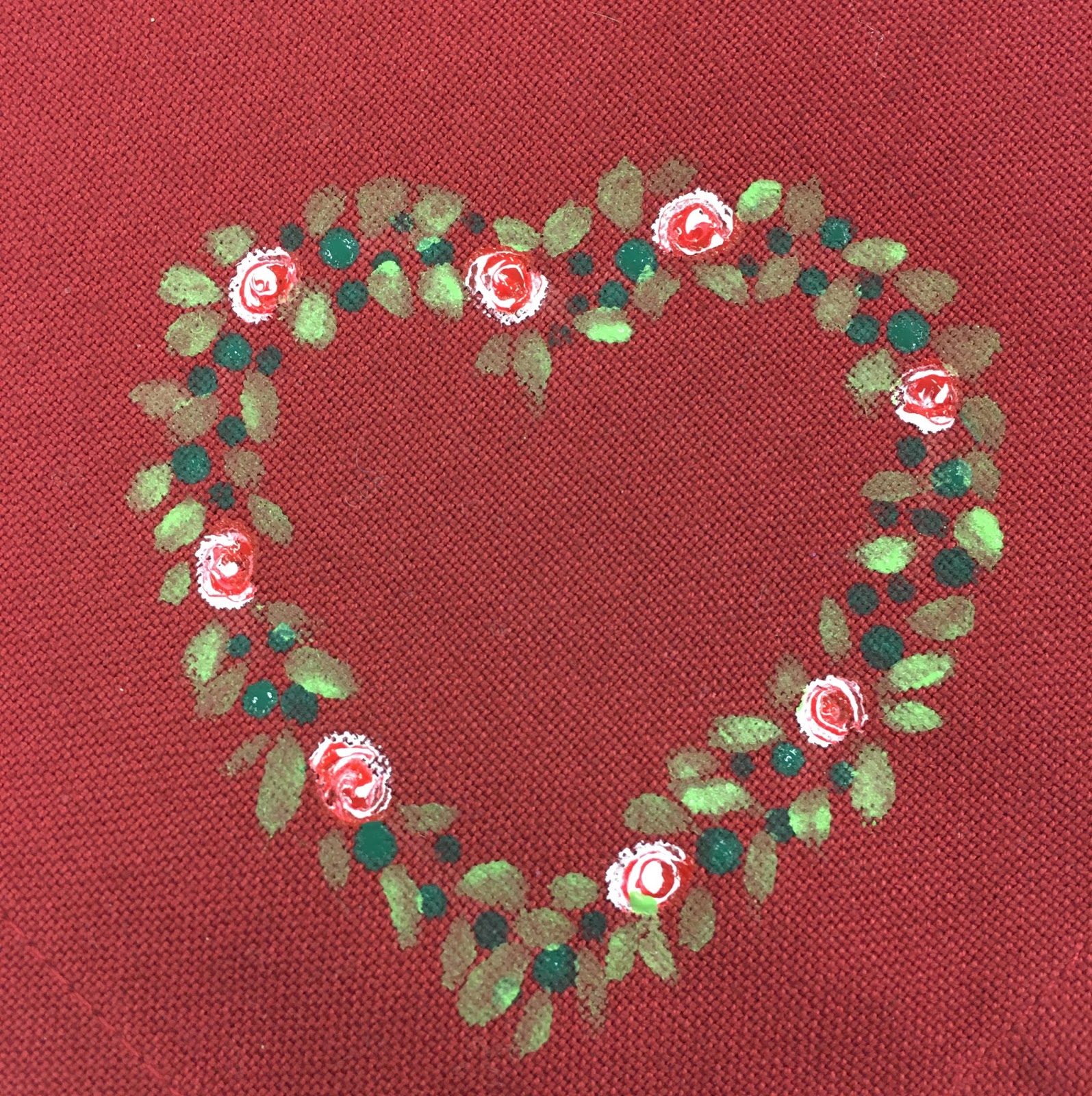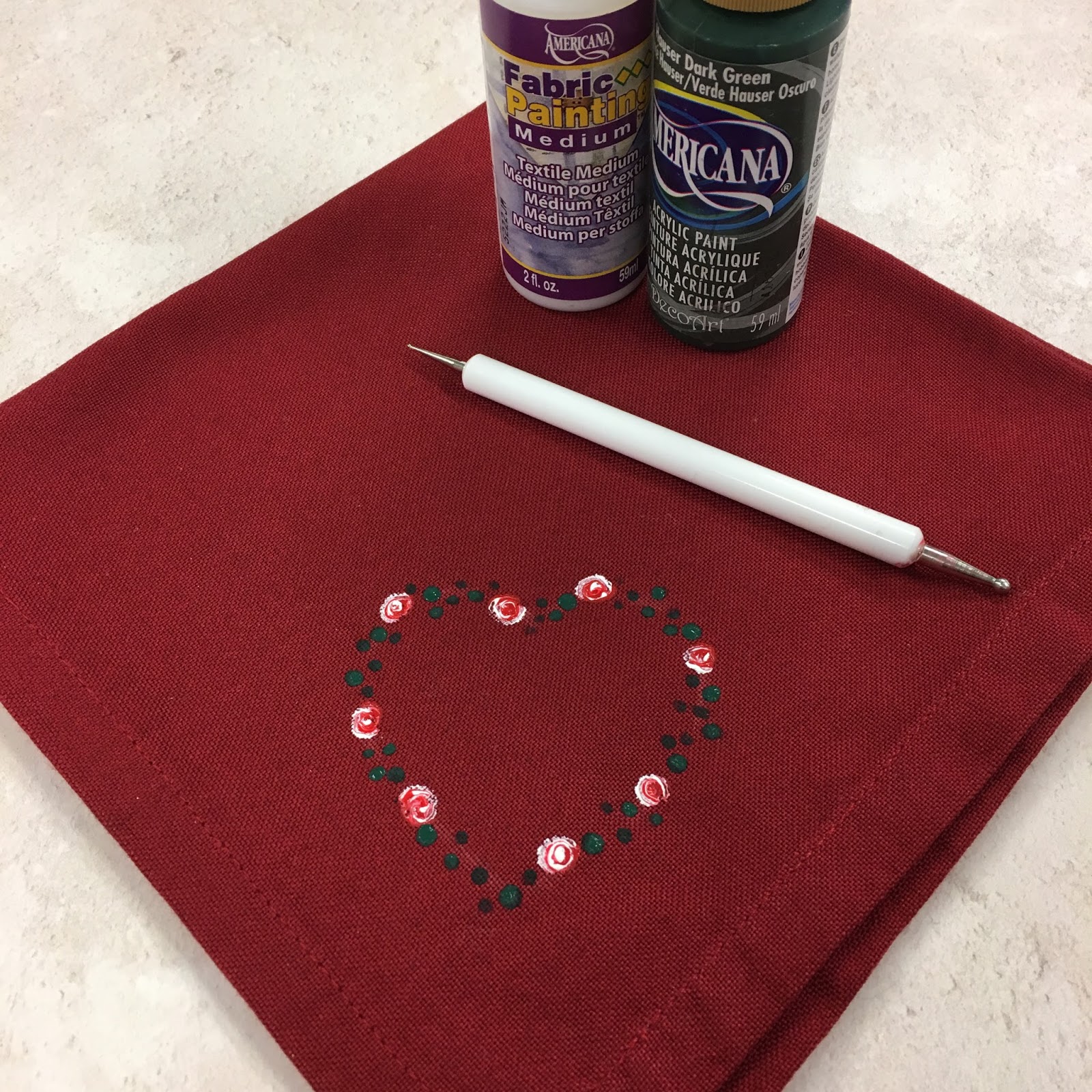 Still using the dotting tool, add dots to fill the space between the roses. We used DecoArt Hauser Dark Green but you could use any dark green you wish.